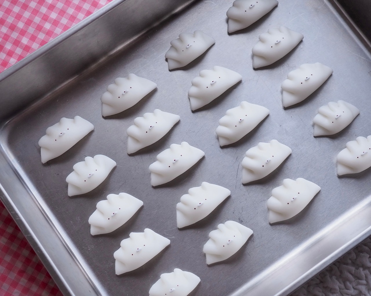 餃子になったごまふぅ、ひとつひとつ手包みしました。