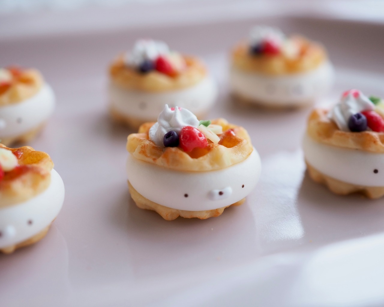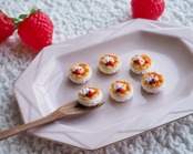 クリームを絞り、フルーツをたくさんトッピングしました。