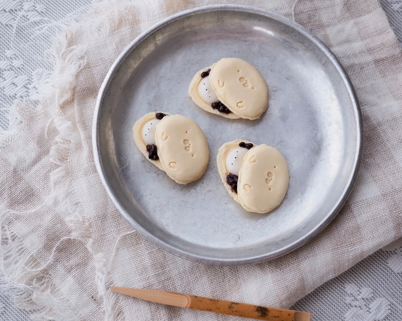 ごまふぅオリジナル最中にあんこと白玉ごまふぅをはさみました。