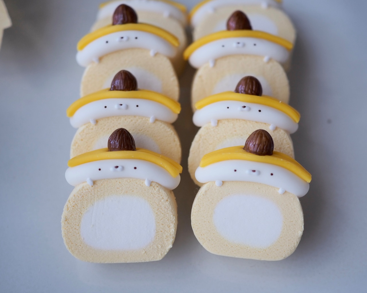ロールケーキにごまふぅクリーム、マロンペースト、栗の渋皮煮をトッピングしました。