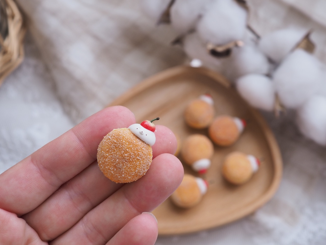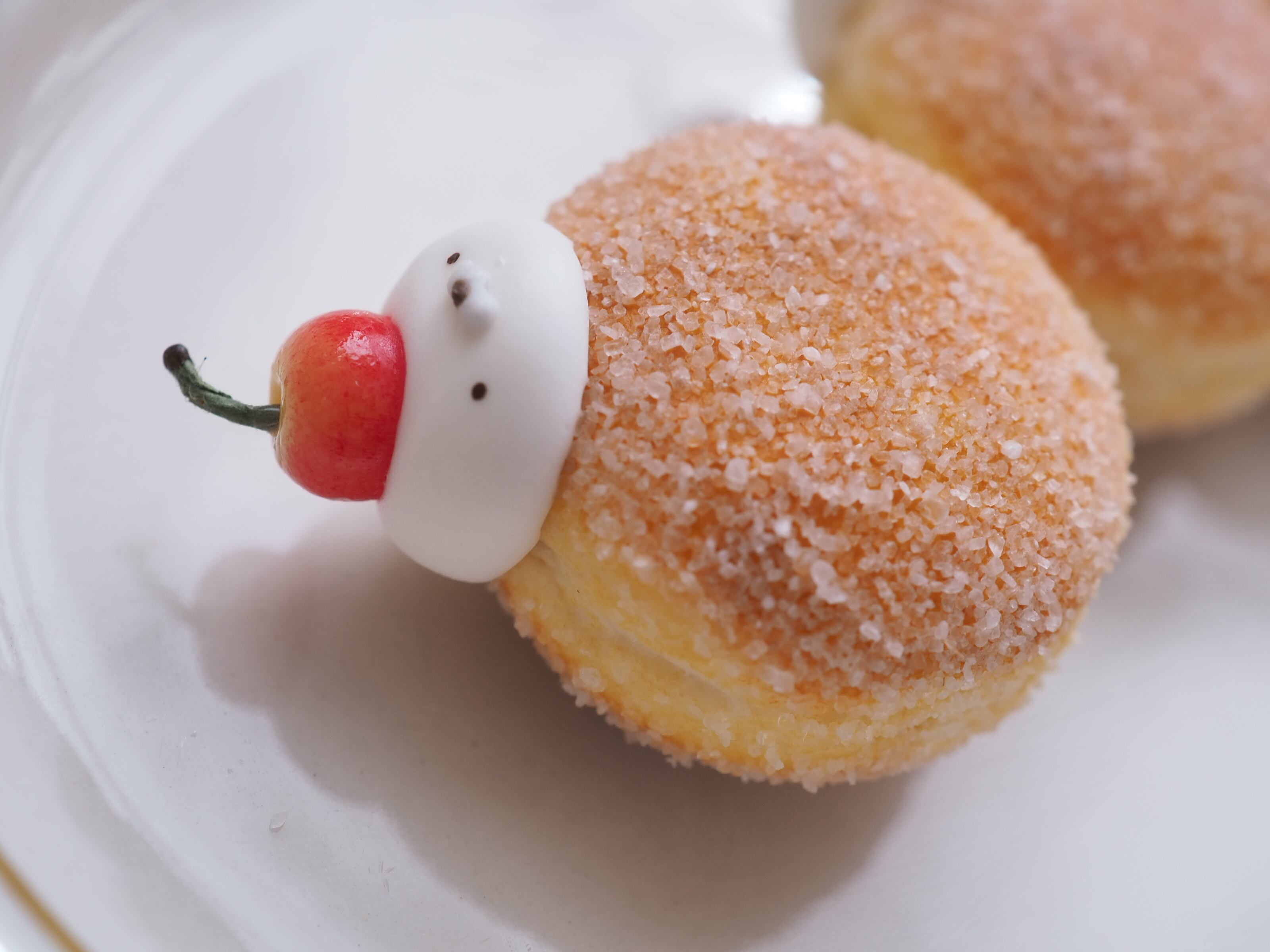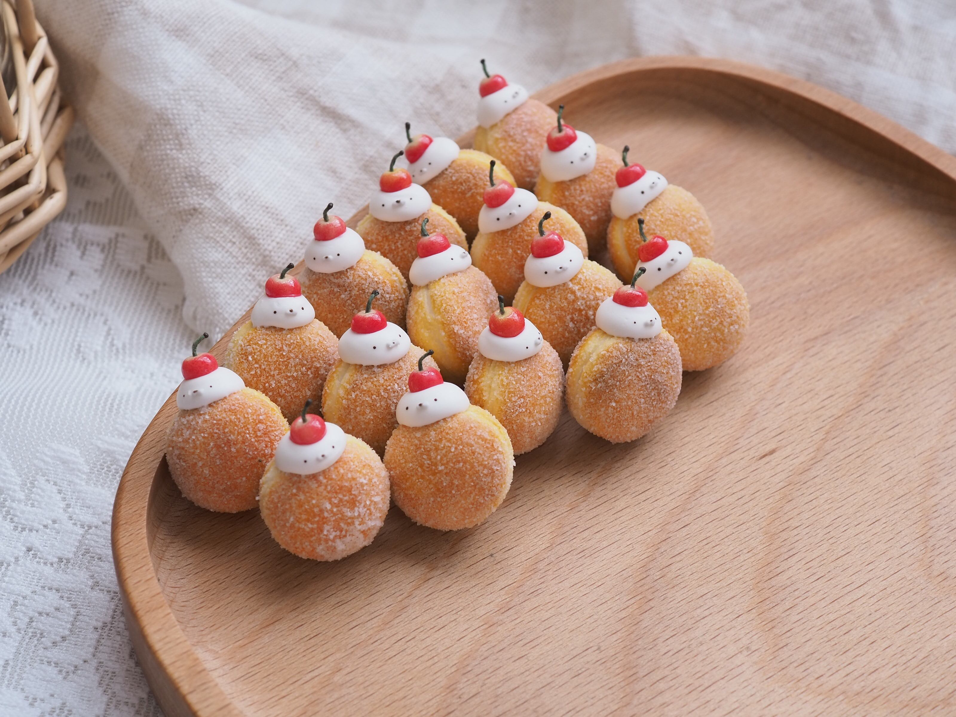 ふんわり揚げたてドーナツにお砂糖をまぶして